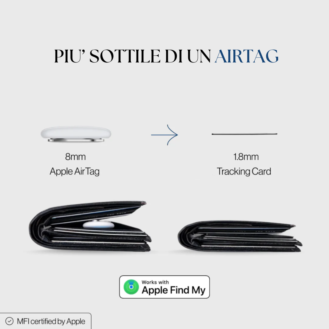 "Finalmente una soluzione che funziona! La tracking card è piccola, elegante e comodissima da portare ovunque. L’ho già testata e tutto funziona perfettamente." Luca B